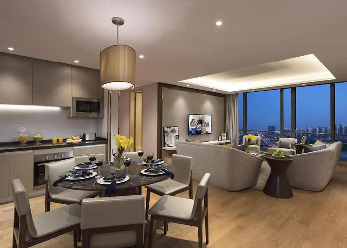 The Somerset Baitang offers rooms with a kitchen and a dining area featuring ironing equipment and climate control, along with free Wi-Fi and a flat-screen TV with satellite channels. A fridge, an oven, and a cooktop are provided for your comfort. Guests can also enjoy city views.